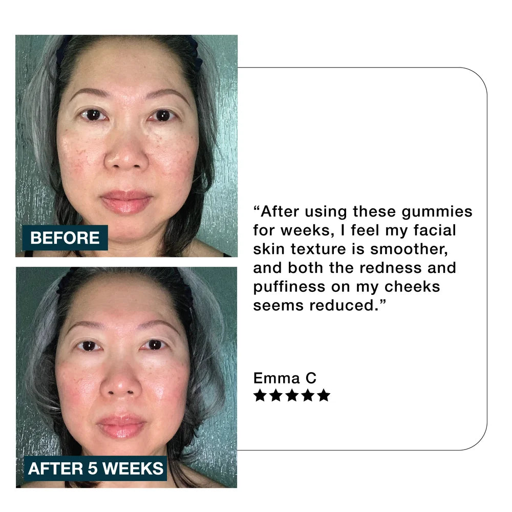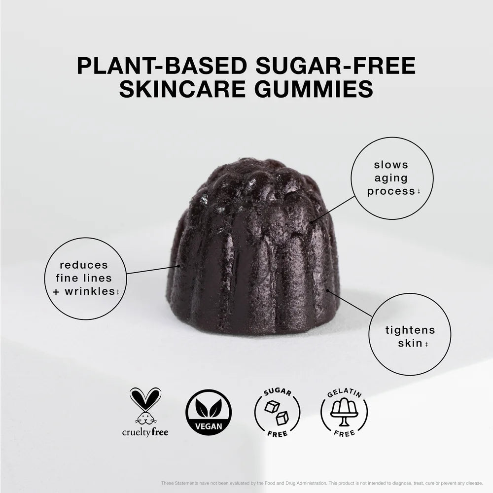Prevent premature ageing and retain skin elasticity with our powerful, one-step anti-aging gummies. Made with Red Wine Extract, Pomegranate, and Tart Cherry, our cruelty-free, organic ingredients support firmer and smoother skin through high-powered antioxidants and natural collagen production. Your skin will thank you!