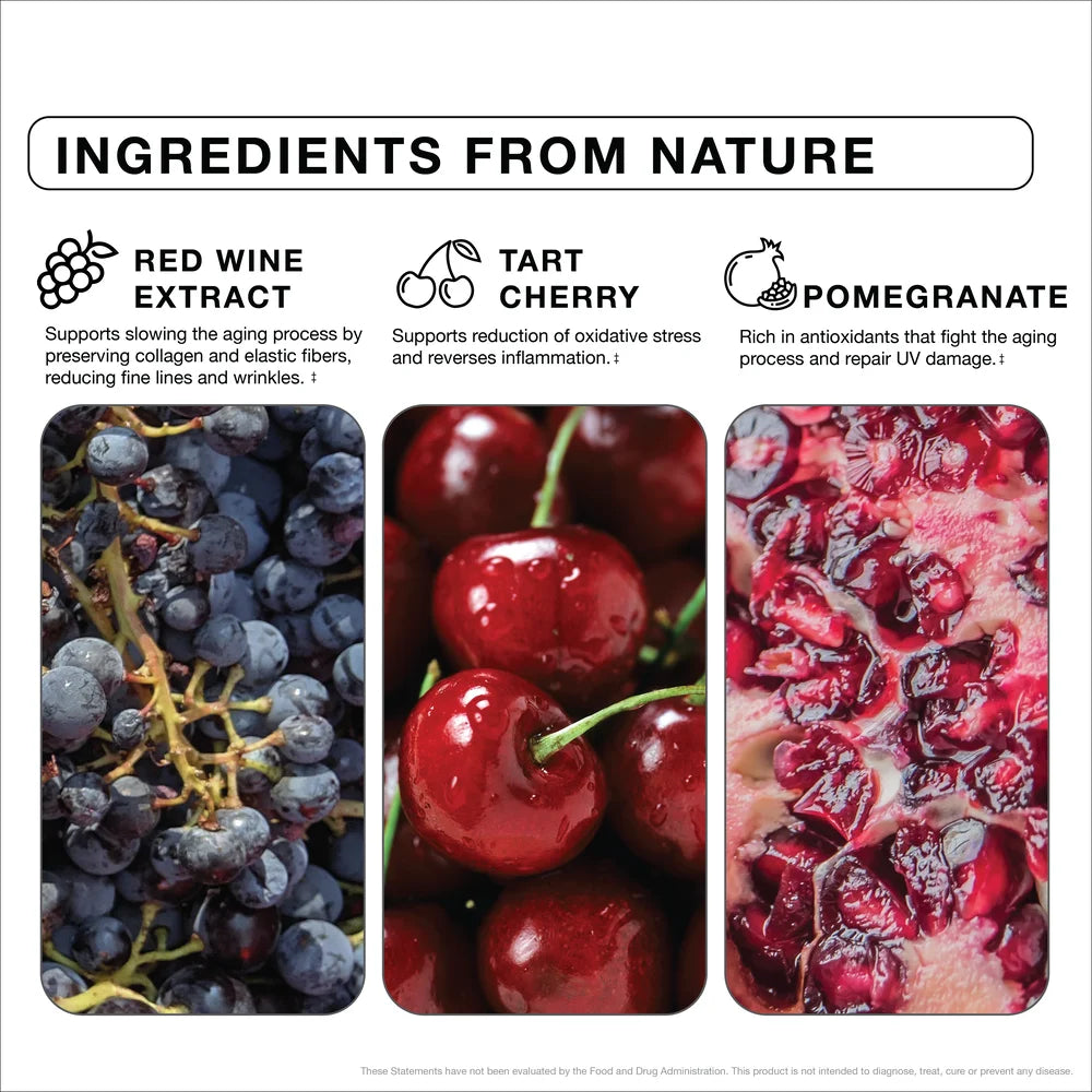Medinical Ingredients: Red Wine Extract, Pomegranate, Tart Cherry